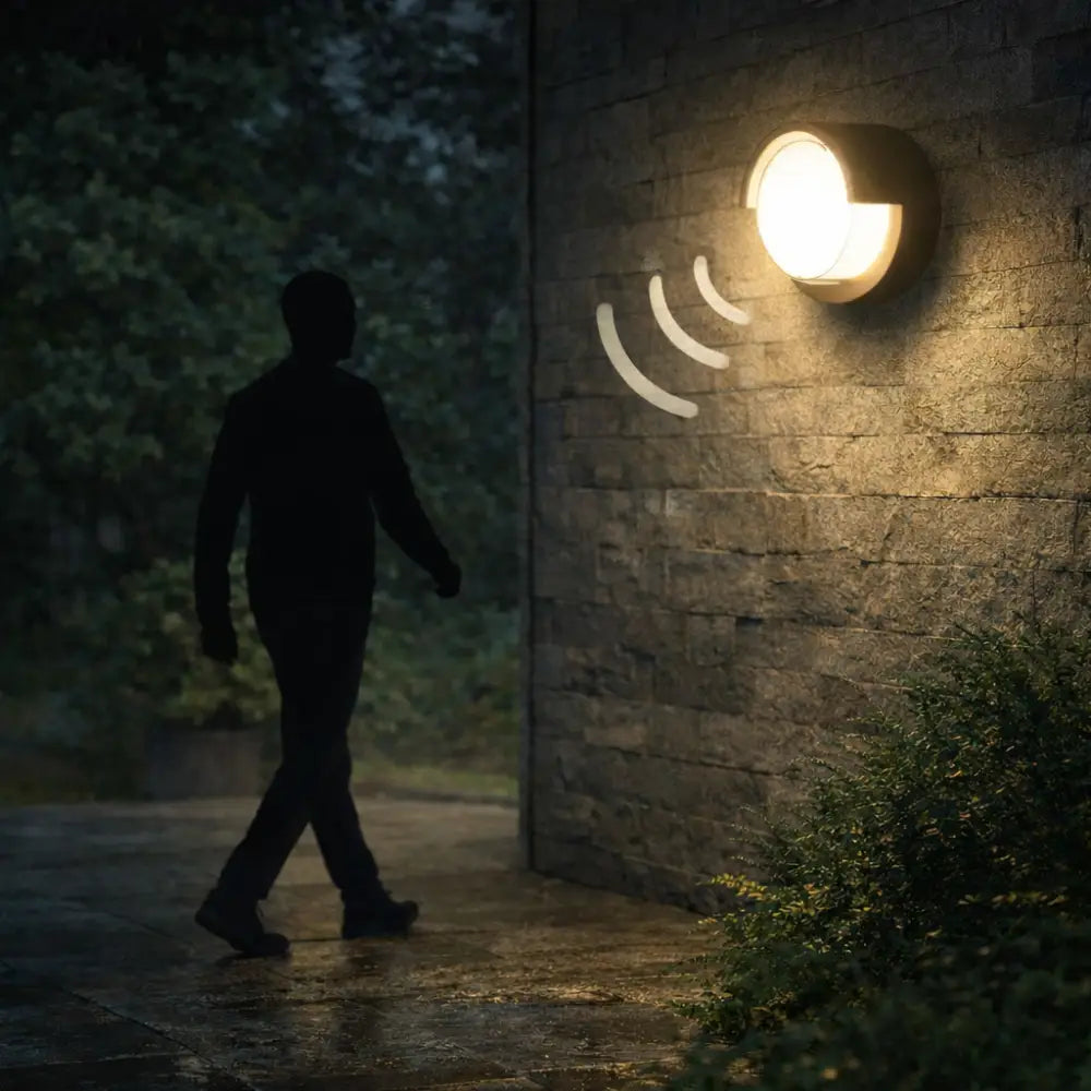 - Applique extérieure équipée d’un détecteur de mouvement radar.
