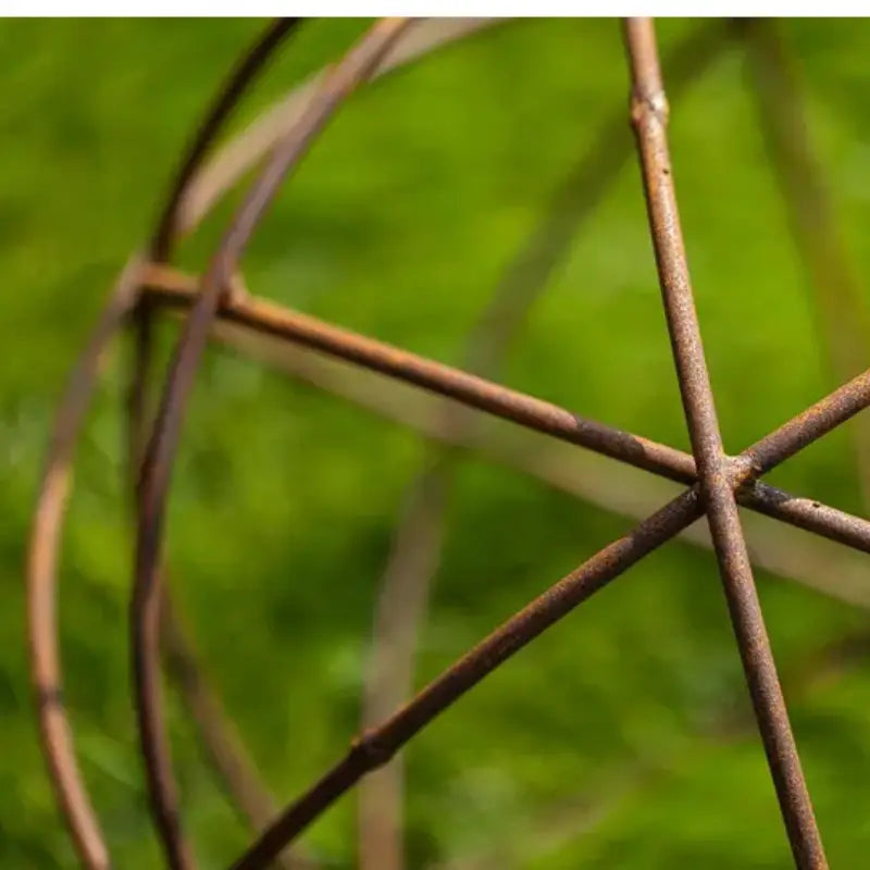 La qualité du fer rond utilisé garantit une stabilité exemplaire face au vent, tandis que la patine évolue en harmonie avec les teintes minérales et végétales de votre terrain. Pour un rendu poétique, laissez des plantes grimpantes légères s'immiscer entre les tiges métalliques ou glissez une guirlande lumineuse fine à l'intérieur pour les veillées nocturnes. Cet objet offre une intégration naturelle qui respecte l'équilibre de votre aménagement paysager.