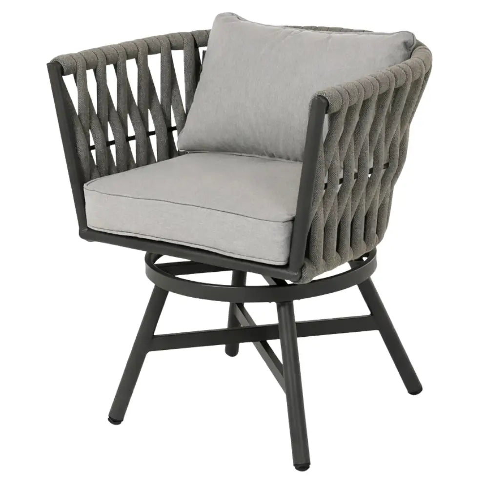 Le mobilier jardin 6 places combine robustesse et esthétique moderne. Les fauteuils pivotants facilitent les échanges autour de la table tout en assurant une assise stable et enveloppante. Pensé pour un usage extérieur régulier, l’ensemble reste simple à entretenir.